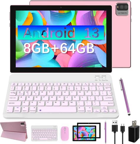 Android 13 Tablet With Keyboard, 2024 Newest 10.1 Inch 2 in 1 Tablets, 8GB RAM+64GB ROM With Case Mouse Stylus, 1.8Ghz Quad Core, 1280800 HD Touch Screen, 8MP Dual Camera, Games, Wi-Fi, BT Tableta PC